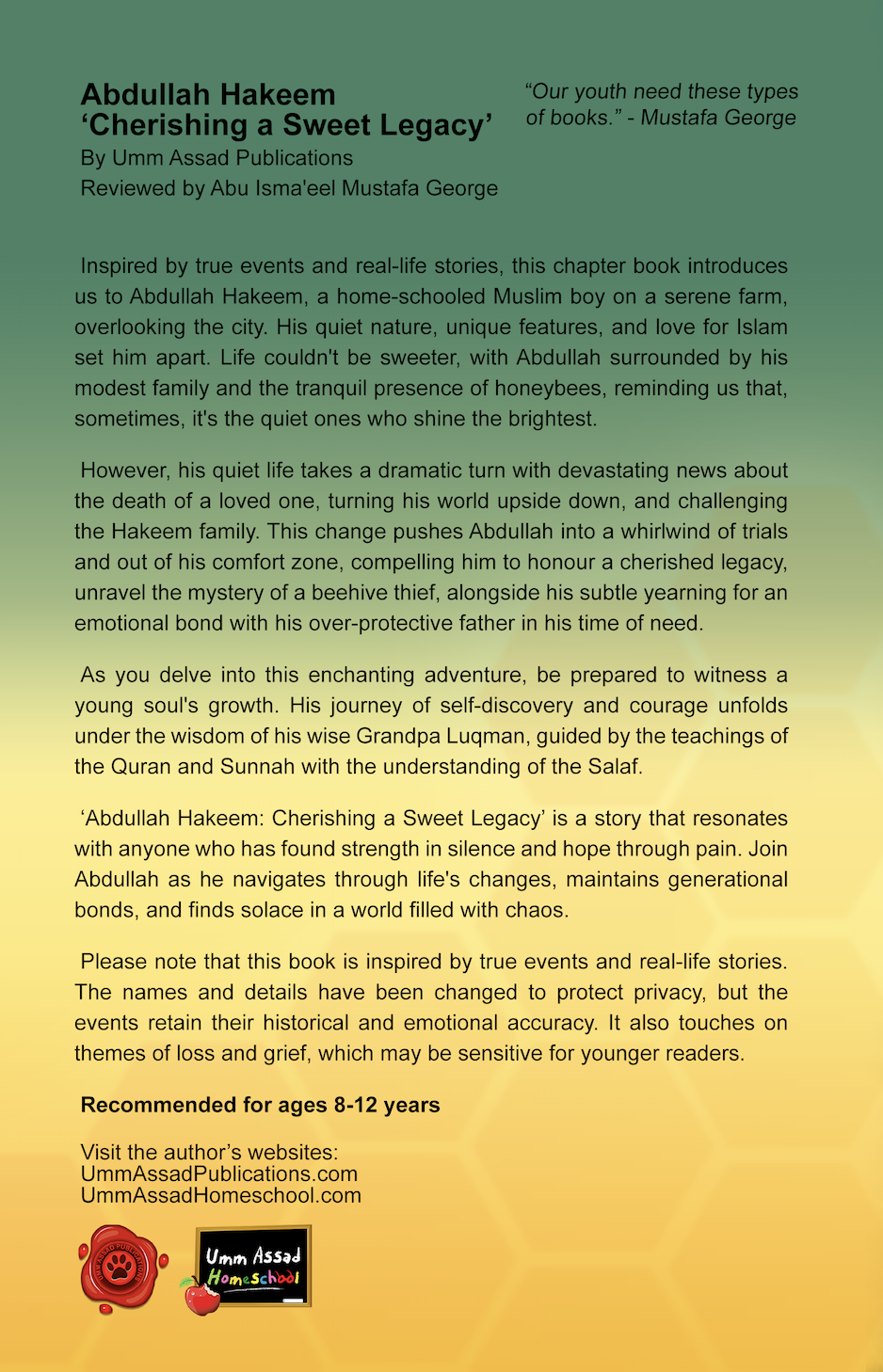 My daughter loves your books she has recently finished reading the four women promised paradise. And she literally asked me is there anymore books form yourself for her to read. I told her about this book coming and instantly she said she wanted it. She is 7 years old and has started to read chapter books but loves reading Islamic ones. I feel like your stories and references are trustworthy and authentic and I can leave her to read the book without me being worried. Keep up the amazing work.